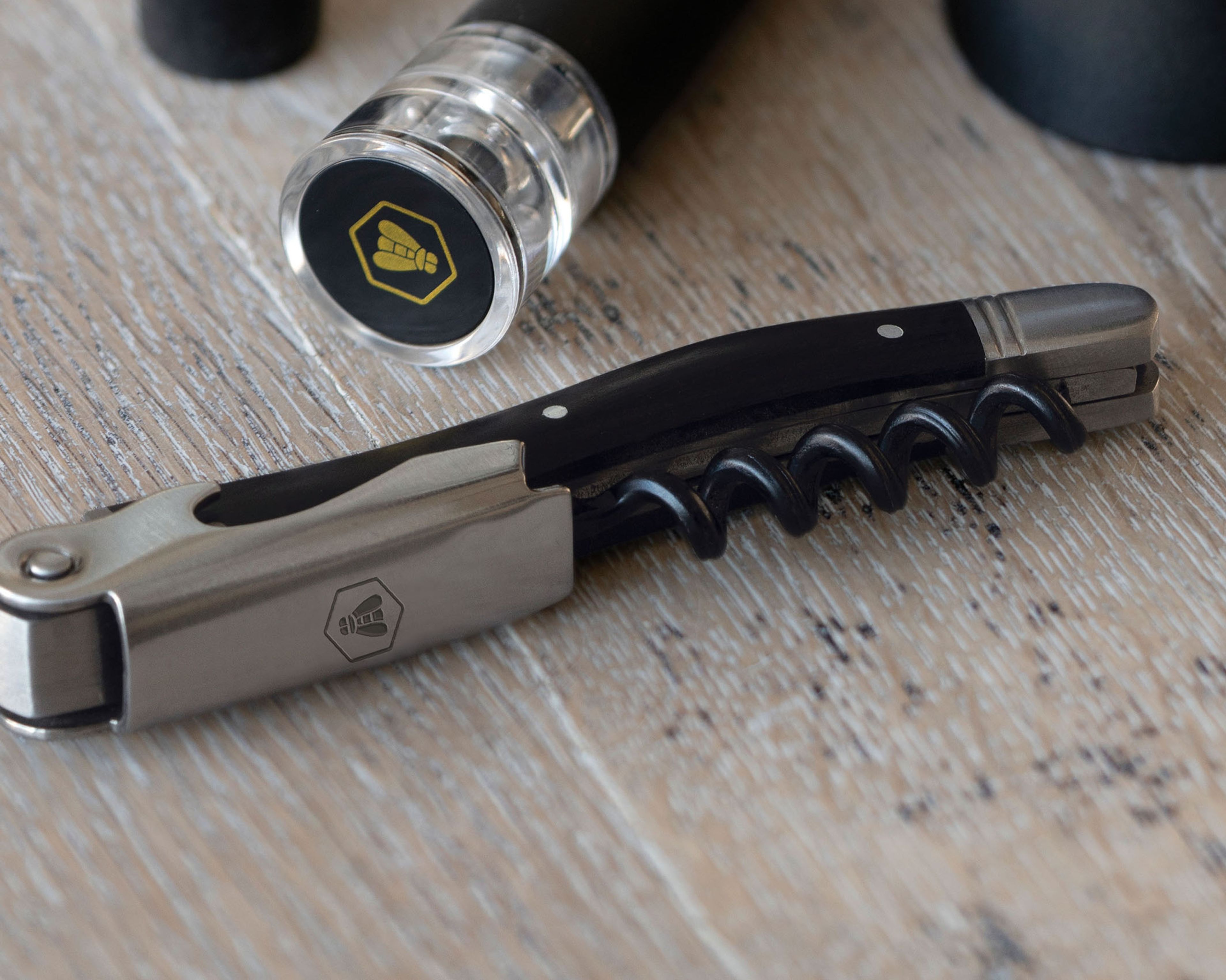 Definito anche il miglior amico del cameriere, il cavatappi a serramanico è un utensile ripiegato su una struttura, allo stesso modo di un coltellino da tasca.